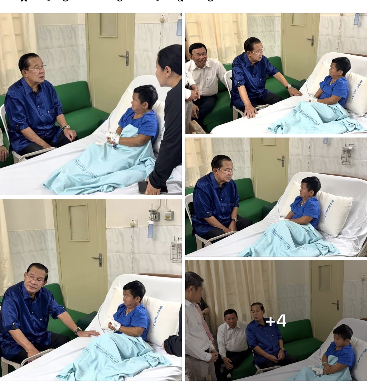 សម្ដេចតេជោ ហ៊ុន សែន បានសរសេរនៅលើបណ្ដាញសង្គមហ្វេសប៊ុកថា ព្រឹកនេះ សម្ដេចឆ្លៀតពេលទៅសួរសុខទុក្ខ នាយក្រិន ដែលកំពុងមានជំងឺនៅមន្ទីរពេទ្យកាលម៉ែត។