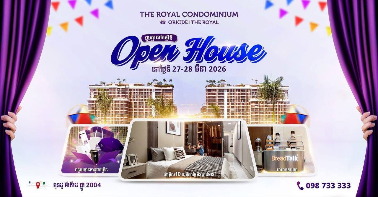 – គម្រោងអ័រគីដេដឹរ៉ូយ៉ាល់ខុនដូ (Orkide The Royal Condominium) ផ្លូវ២០០៤ តម្លៃពិសេសបង់ប្រចាំខែត្រឹម ៣៥០ដុល្លារ/ខែ តែប៉ុណ្ណោះ។ គម្រោងនេះ រួមមានខុនដូដ៏ស៊ីវីល័យជាមួយនឹងអាងហែលទឹកដ៏ធំជាងគេក្នុងរាធានីភ្នំពេញ ហើយមិនចាំបាច់ធ្វើដំណើរឆ្ងាយមួយជំហានទៅកាន់គ្រប់ទីកន្លែងមិនថាសាលារៀន ផ្សារទំនើប អាហារដ្ឋានផ្សេងៗ។ មិនបាច់ចាំសំណង់យូរទិញភ្លាមចូលរស់នៅភ្លាម។ កក់ភ្លាមនឹងទទួលបានក្អមមាស ក្អមនាំសំណាងភ្លាម។
