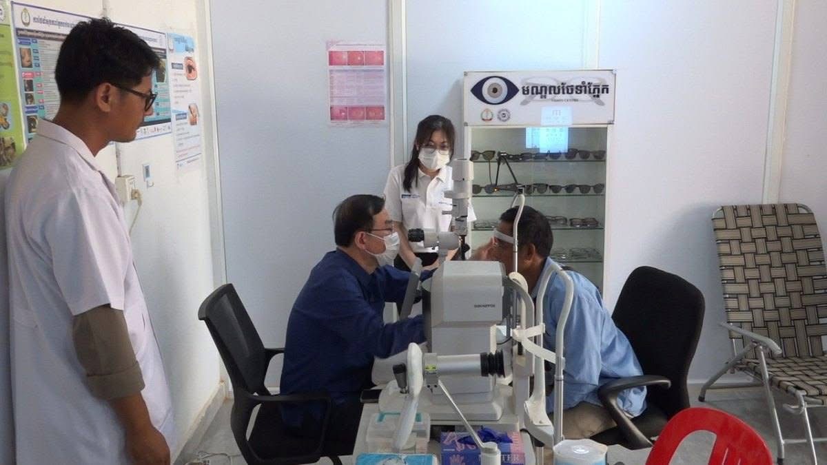 កំពត: មន្ទីរពេទ្យព្រះអង្គឌួង នៃក្រសួងសុខាភិបាល បានដឹកនាំក្រុមគ្រូពេទ្យការងារគ្រូពេទ្យផ្នែកចក្ខុរោគ ចុះពិនិត្យសុខភាពភ្នែក ព្យាបាលវះកាត់ភ្នែក ផ្តល់ថ្នាំបន្តក់ភ្នែក និងចែកវ៉ែនតា ដោយឥតគិតថ្លៃជូនបងប្អូនប្រជាពលរដ្ឋ រស់នៅក្នុងស្រុកឈូក ខេត្តកំពត។