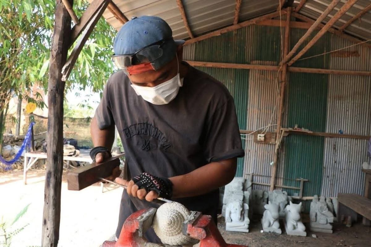 លោកសេក គីន ជាយុវជនម្នាក់ដែលបានចូលរៀនជំនាញដាប់ឆ្លាក់ថ្ម នៅទីនោះរយៈពេល៦ខែមកហើយ ឱ្យដឹងថាបច្ចុប្បន្ន លោកចេះឆ្លាក់រូបសត្វនិងក្បាច់ផ្សេងៗខ្លះៗនៅលើថ្ម។ លោកថា រូបលោកពេញចិត្តនិងជំនាញឆ្លាក់ថ្មនេះ ពីព្រោះវានឹងធ្វើឱ្យលោកមានចំណេះពិតប្រាកដនៅថ្ងៃខាងមុខ ព្រមទាំងអាចរកប្រាក់កម្រៃជួយដល់ជីវភាពគ្រួសារ បានល្អជាងការងារសំណង់ដែលលោកធ្លាប់ធ្វើកន្លងមក។