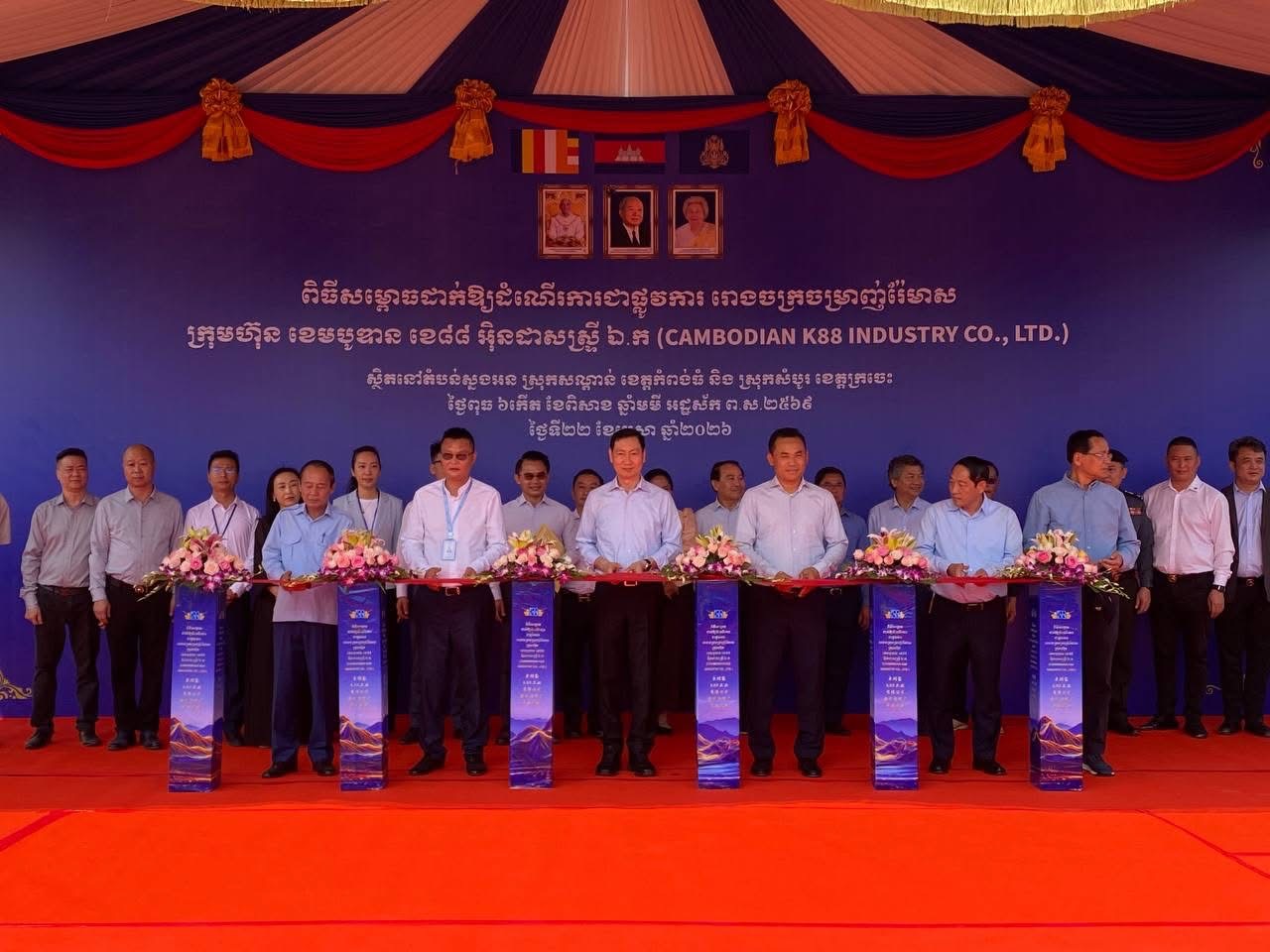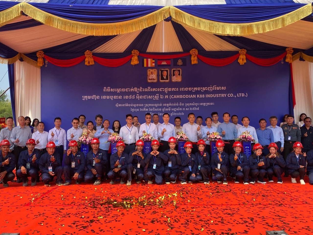 កំពង់ធំ៖ រោងចក្រស្លមាសរបស់ក្រុមហ៊ុន CAMBODIAN K88 INDUSTRY និងជារោងចក្រស្លមាសទី៣ នៅកម្ពុជា ដែលមានទីតាំងស្ថិតនៅតំបន់ស្មងអន ស្រុកសណ្តាន់ ខេត្តកំពង់ធំ និងស្រុកសំបូរ ខេត្តក្រចេះ បានចាប់ផ្តើមបើកដំណើរការខ្សែសង្វាក់ផលិតកម្មជាផ្លូវការហើយ នាព្រឹកថ្ងៃទី២២ ខែមេសា ឆ្នាំ២០២៦នេះ ក្រោមអធិបតីភាពលោក កែវ រតនៈ រដ្ឋមន្ត្រីក្រសួងរ៉ែ និងថាមពល។