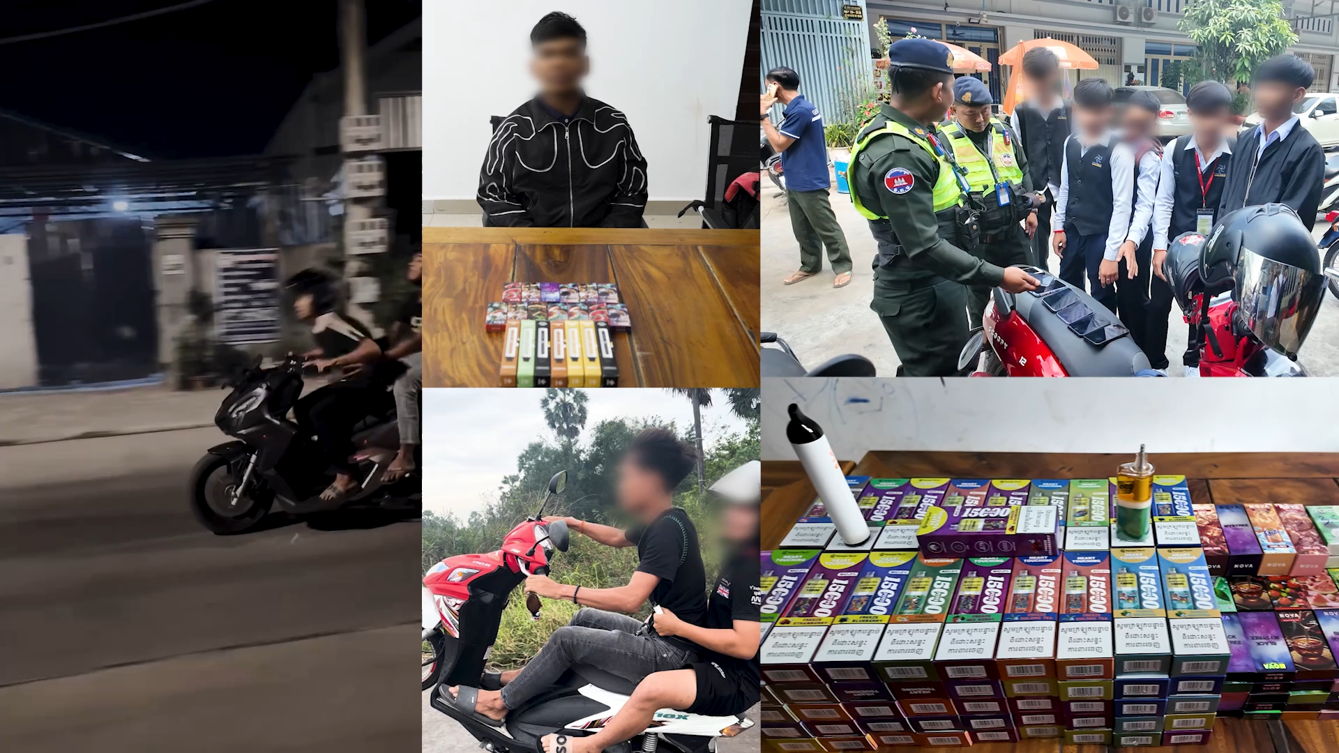 ភ្នំពេញ៖កាលពីយប់ថ្ងៃទី២៨ ខែមករា ឆ្នាំ២០២៦ អាវុធហត្ថរាជធានីភ្នំពេញ បានទទួលបណ្តឹងផ្ទាល់មាត់ពីប្រជាពលរដ្ឋតាមរយៈលេខទូរស័ព្ទបន្ទាន់ ១២៩១ ដើម្បីសុំអន្តរាគមន៍ចំពោះករណីក្មេងទំនើងបង្ហោះម៉ូតូតាមផ្លូវសាធារណ: និងប្រើប្រាស់បារីអេឡិចត្រូនិច យ៉ាងអនាធិបតេយ្យ។ បន្ទាប់ពីទទួលបានបណ្ដឹងខាងលើ នៅថ្ងៃទី២៩ ខែមករា ឆ្នាំ២០២៦ ចាប់ពីម៉ោង ០៨:០០នាទី ដល់ម៉ោង ១៤:១០នាទី កម្លាំងជំនាញ កងរាជអាវុធហត្ថរាជធានីភ្នំពេញ សហការជាមួយកម្លាំងមូលដ្ឋានអាវុធហត្ថខណ្ឌដង្កោ បានធ្វើការឆ្មក់បង្ក្រាបក្រុមក្មេងទំនើង ០៦នាក់ ដែលតែងធ្វេីសកម្មភាពបង្ហោះម៉ូតូនៅចំណុចបុរី លឹម ឈាងហាក់ ផ្លូវបេតុងលេខ០៦ ផ្ទះលេខ៥៤ ស្ថិតក្នុងភូមិសំបួរ សង្កាត់ដង្កោ ខណ្ឌដង្កោ រាជធានីភំ្នពេញ យកមកធ្វើការអប់រំ ធ្វើកិច្ចសន្យាបញ្ឈប់រាល់សកម្មភាពទំនើងដែលនាំឲ្យប៉ះពាល់ដល់ការសិក្សា បំផ្លាញទ្រព្យសម្បត្តិក៏ដូចជាកិត្តិយសគ្រួសារ ព្រមទាំងបង្ករការភ័យខ្លាចដល់អ្នកជុំវិញ បង្ករភាពអនាធិបតេយ្យក្នុងសង្គម ដោយដកហូតបារីអេឡិចត្រូនិច(វ៉ែប)ចំនួន ០១ដើម និងម៉ូតូ ០៦គ្រឿង ត្រូវយកទៅរក្សាទុករយៈពេល ០៣ខែ នៅទីបញ្ជាការ កងរាជអាវុធហត្ថរាជធានីភ្នំពេញ។