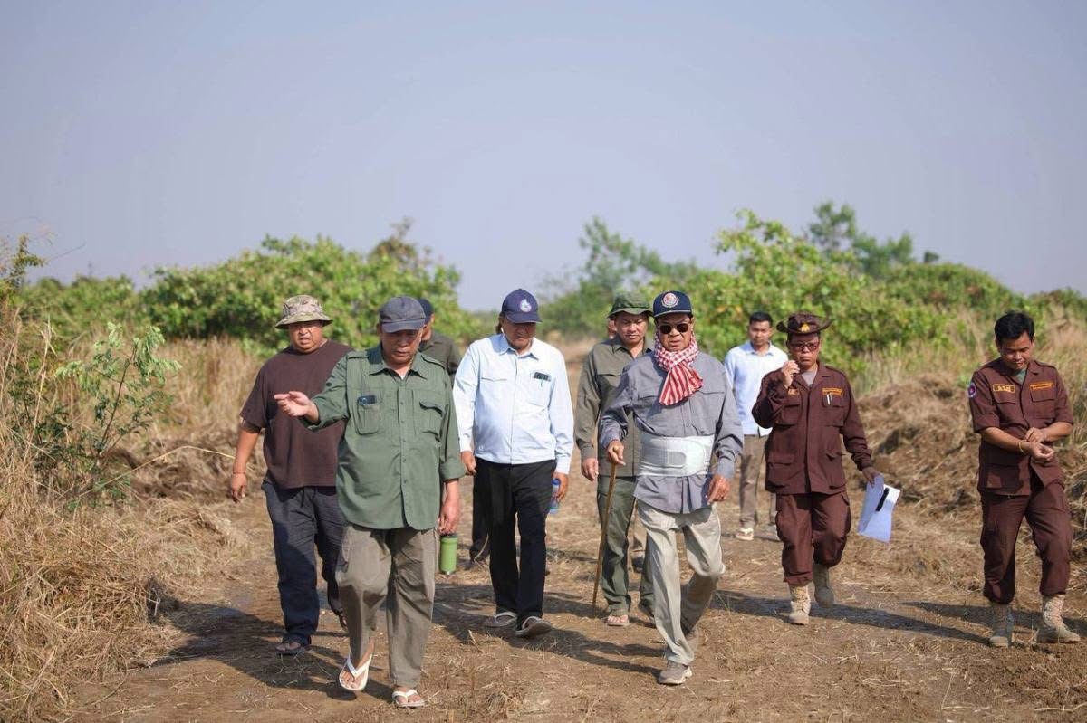ឯកឧត្តមកិត្តិសង្គហបណ្ឌិត គន់ គីម ទេសរដ្ឋមន្រ្តី អនុប្រធានទី១ គណៈកម្មាធិការជាតិគ្រប់គ្រងគ្រោះមហន្តរាយ (គ.ជ.គ.ម.) និង នាយឧត្តមសេនីយ៍ ខេង សុមេធ មេបញ្ជាការកងវិស្វកម្មតេជោ ហ៊ុនសែន-សៀមរាប នៅថ្ងៃទី១០ ខែកុម្ភៈ ឆ្នាំ២០២៦ បានអញ្ជើញចុះពិនិត្យការរៀបចំហេដ្ឋារចនាសម្ព័ន្ធនៅលើទីតាំងសម្រាប់សាងសង់ជម្រកបណ្តោះអាសន្នជូនប្រជាពលរដ្ឋភៀសសឹក នៅក្នុងខេត្តបន្ទាយមានជ័យ។