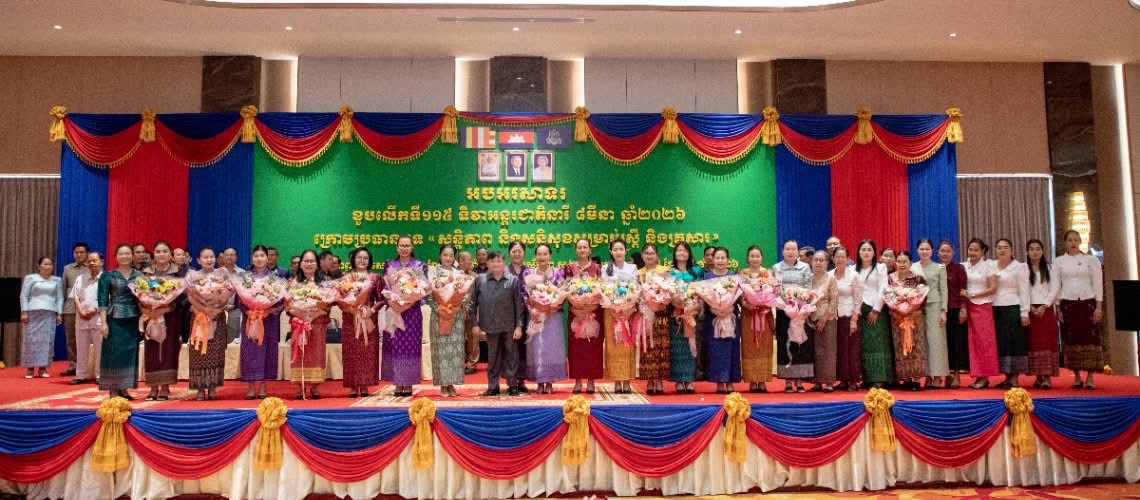ភ្នំពេញ : ឯកឧត្តម ហេង សួរ រដ្ឋមន្ត្រីក្រសួងការងារ និងបណ្ដុះបណ្ដាលវិជ្ជាជីវៈ និងជាប្រធានក្រុមការងាររាជរដ្ឋាភិបាលចុះមូលដ្ឋានខណ្ឌចំការមន និងខណ្ឌពោធិ៍សែនជ័យ បានអញ្ជើញចូលរួមពិធីអបអរសាទរខួបលើកទី១១៥ ទិវាអន្តរជាតិនារី ៨មីនា ឆ្នាំ២០២៦ ដោយក្នុងឱកាសនោះ បានគូសបញ្ជាក់ពីការលះបង់របស់ស្រ្តី នារី និងក្មេងស្រីពីគ្រួសារវីរកងកម្លាំងប្រដាប់អាវុធ និងជនភៀសសឹកពីសង្រ្គាមឈ្លានពានទឹកដី។